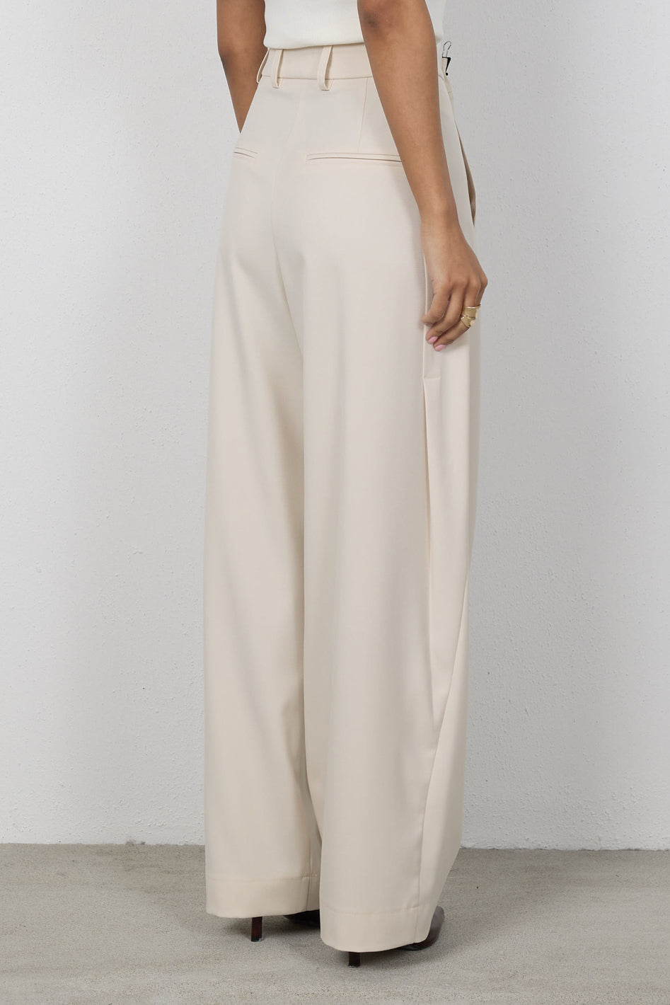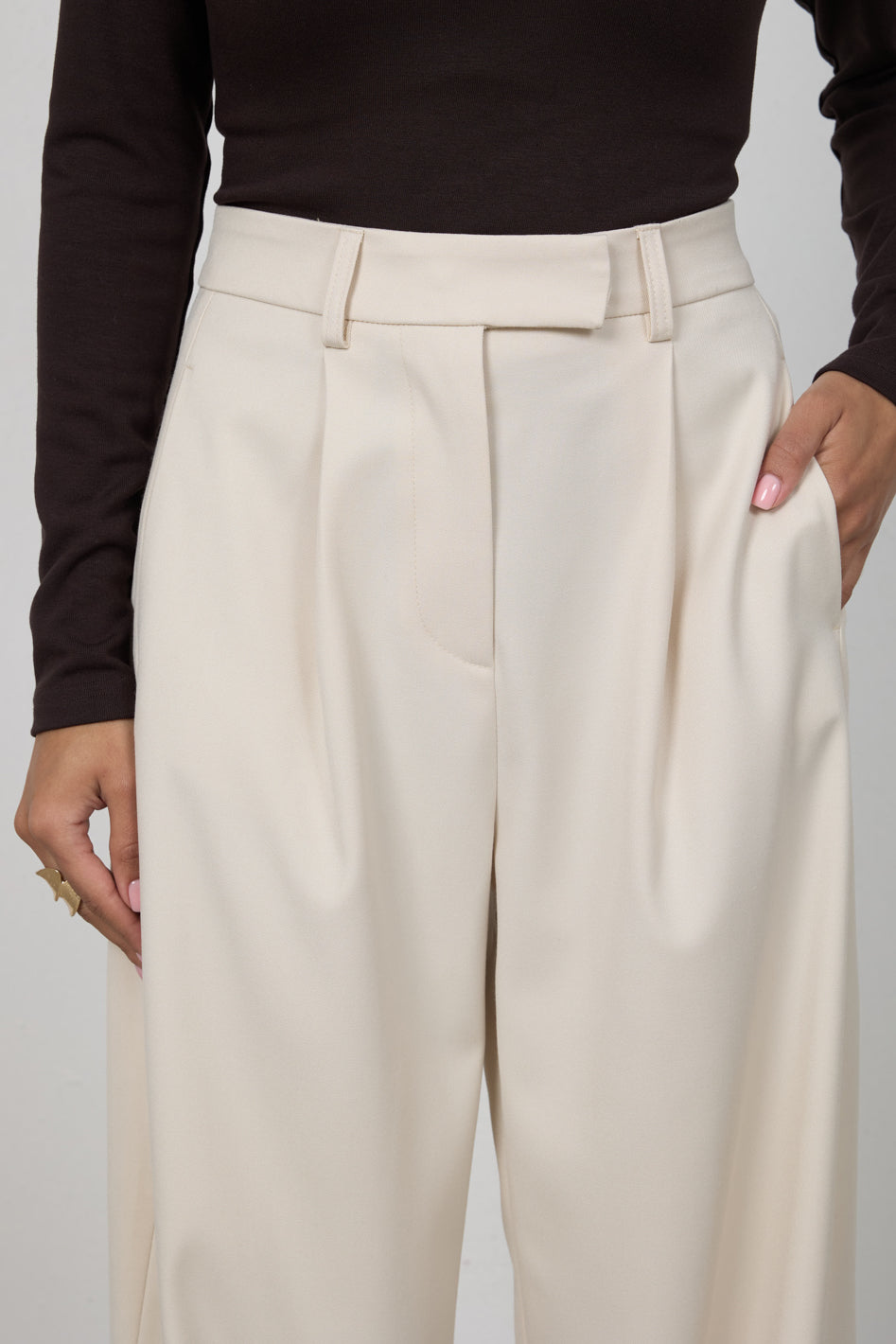 Spodnie zachwyciły mnie krojem i jakością, materiał nie prześwituje, fajnie się układają i pasują zarówno do niskich jak i wyższych obcasów.