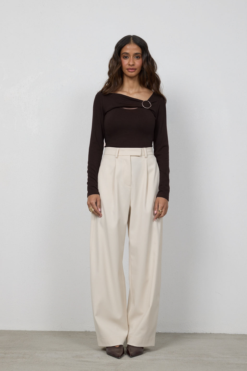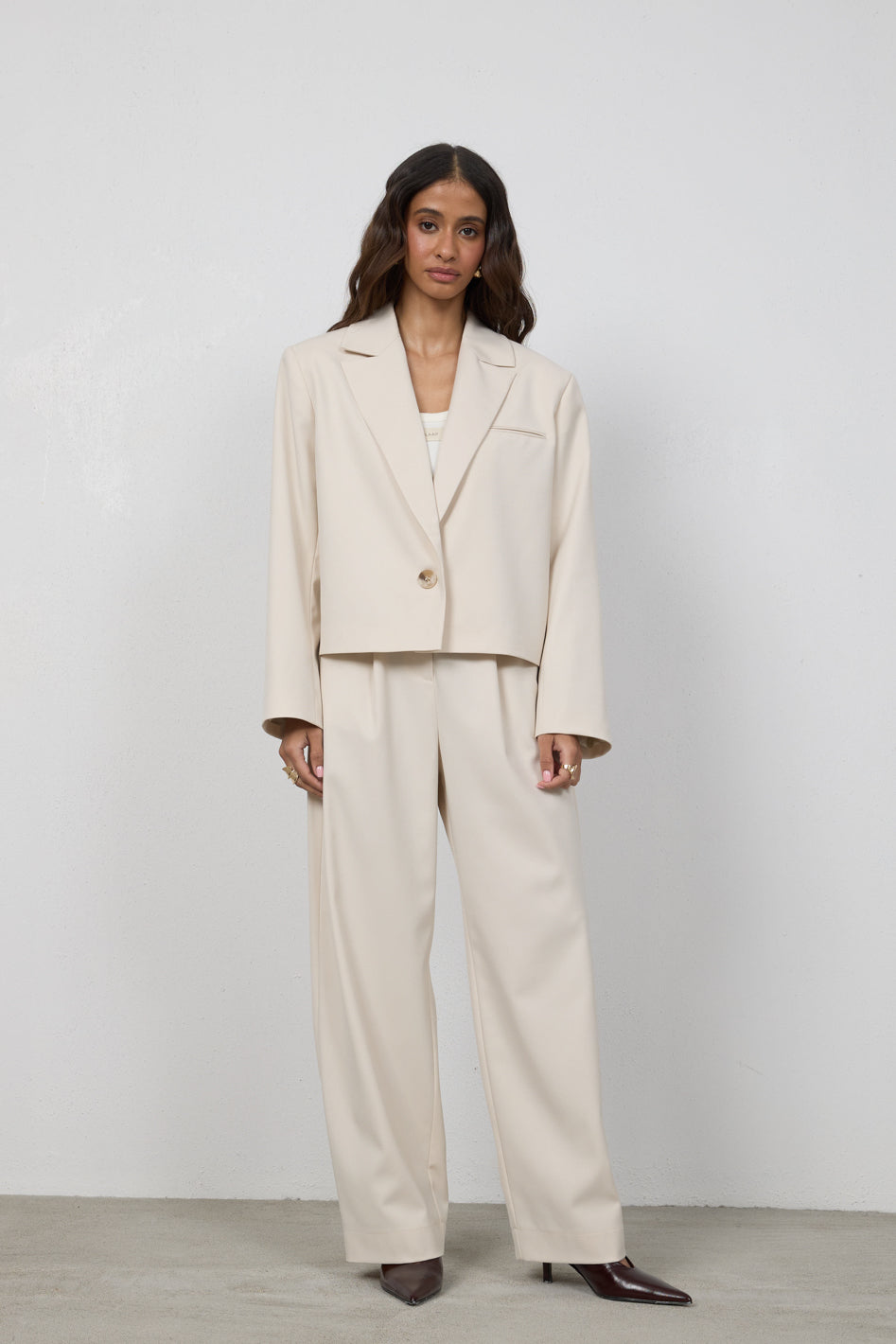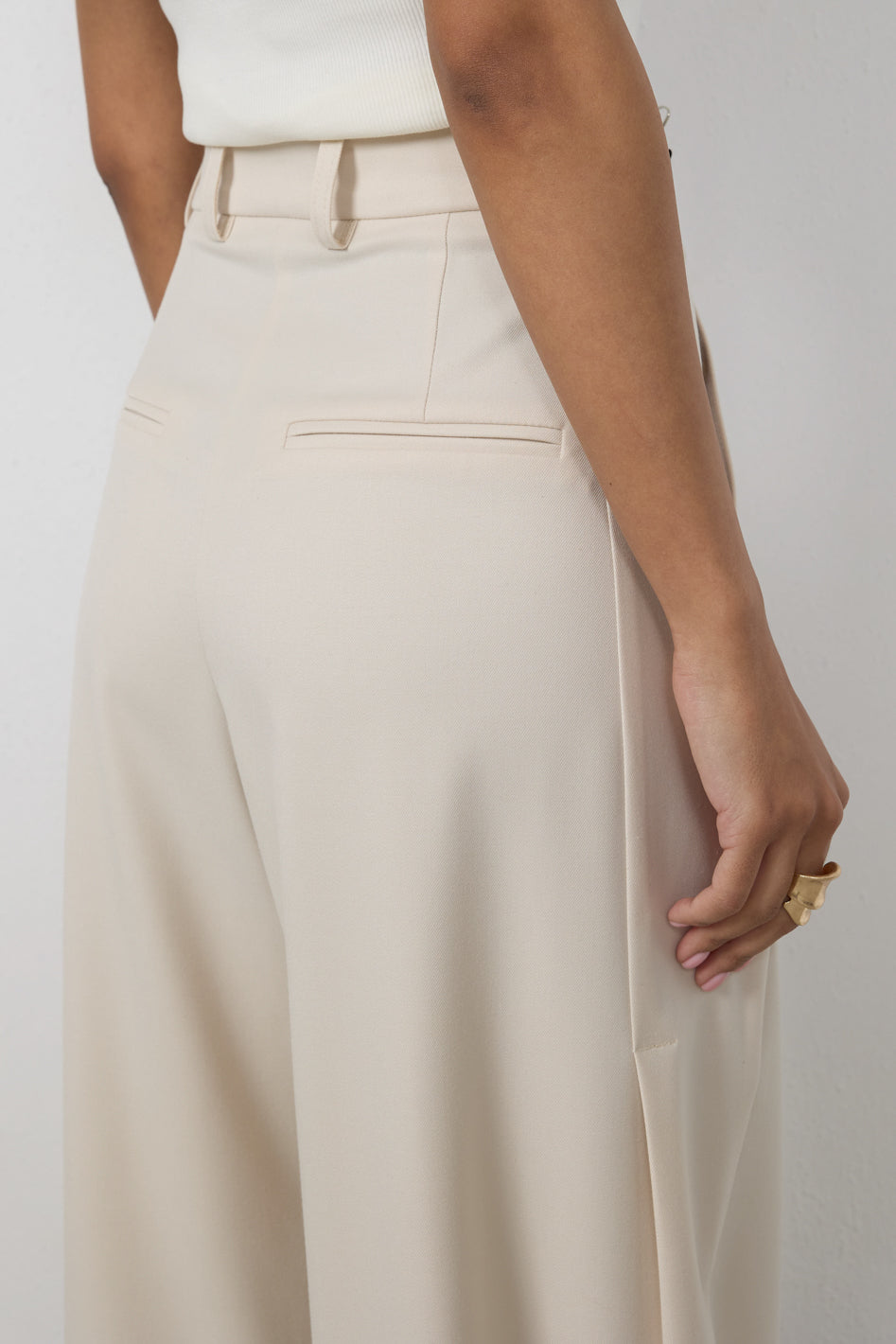 Spodnie Elio Petite to model z szeroką nogawką zwężającą się ku dołowi, zaprojektowany z myślą o kobietach do 164 cm wzrostu. Wysoki stan podkreśla talię, a dopracowana konstrukcja z subtelnymi detalami nadaje sylwetce lekkości i nowoczesnego charakteru.