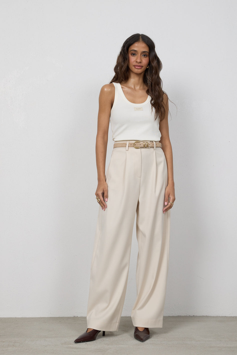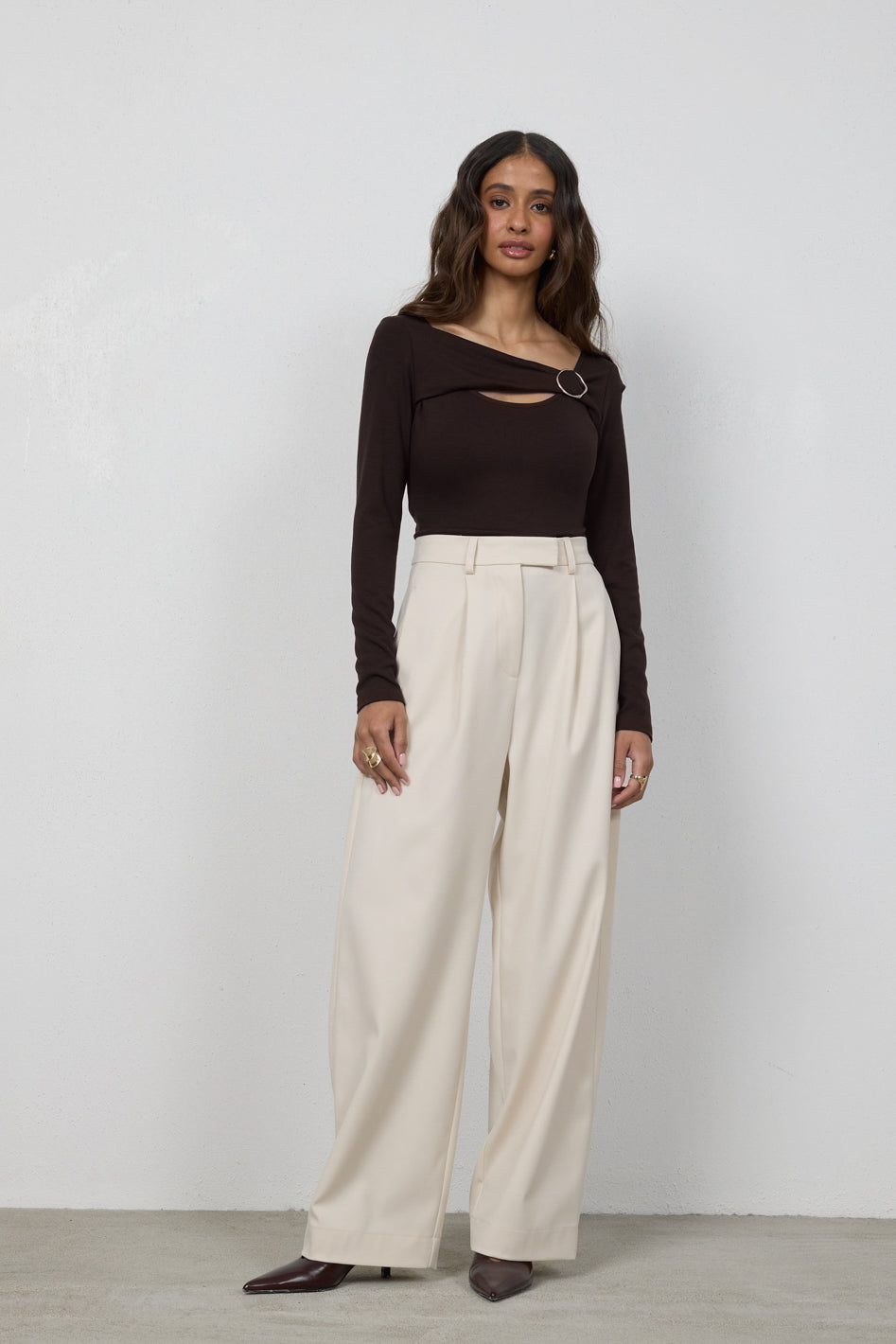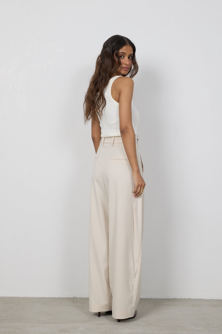 Spodnie Elio Petite to model z szeroką nogawką zwężającą się ku dołowi, zaprojektowany z myślą o kobietach do 164 cm wzrostu. Wysoki stan podkreśla talię, a dopracowana konstrukcja z subtelnymi detalami nadaje sylwetce lekkości i nowoczesnego charakteru.
