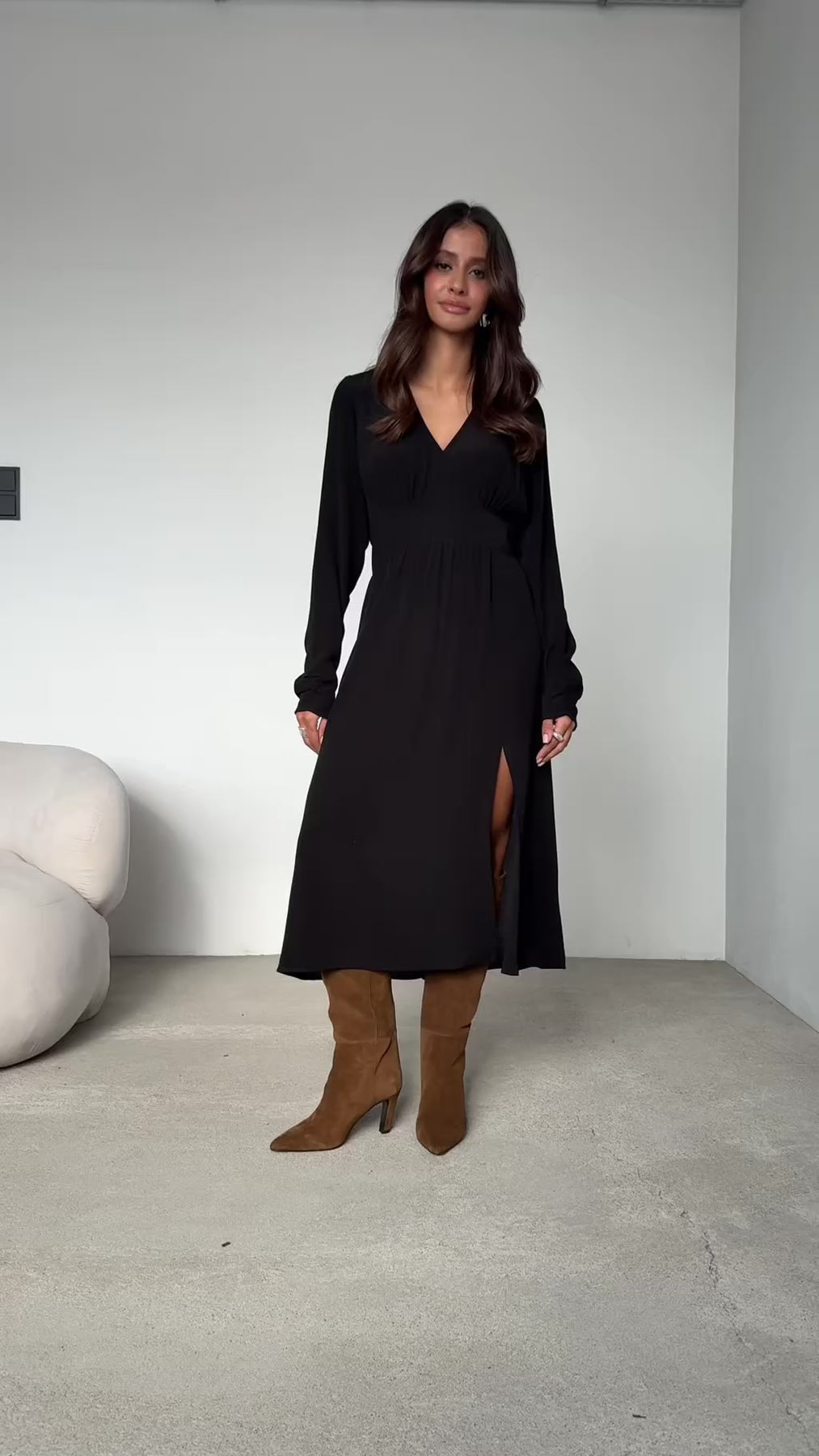 Sukienka Luza Petite została zaprojektowana dla kobiet do 164 cm wzrostu. Materiał wykonany jest w 100% z wiskozy, dzięki czemu jest lejący i świetnie układa się na sylwetce. Sukienka posiada dekolt w kształcie litery V oraz długi, zwężany rękaw, który dodaje jej klasycznego charakteru. Długość midi sprawia, że ten model sprawdzi się zarówno na co dzień, jak i na bardziej wyjątkowe okazje.