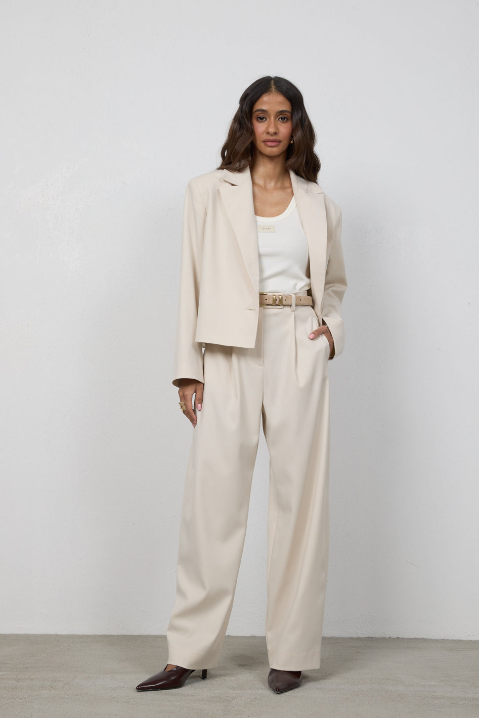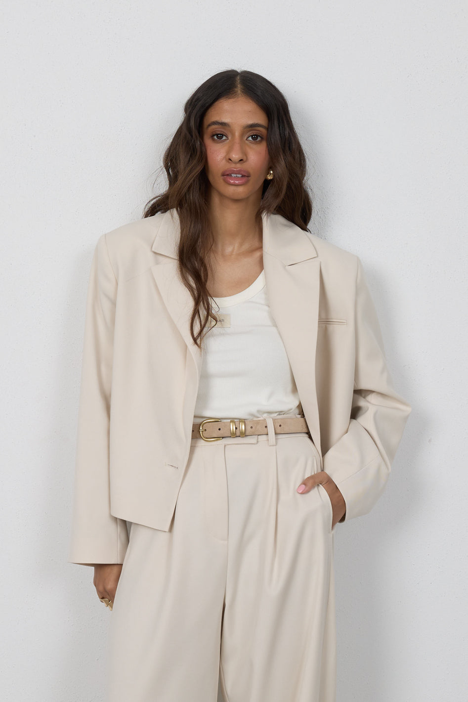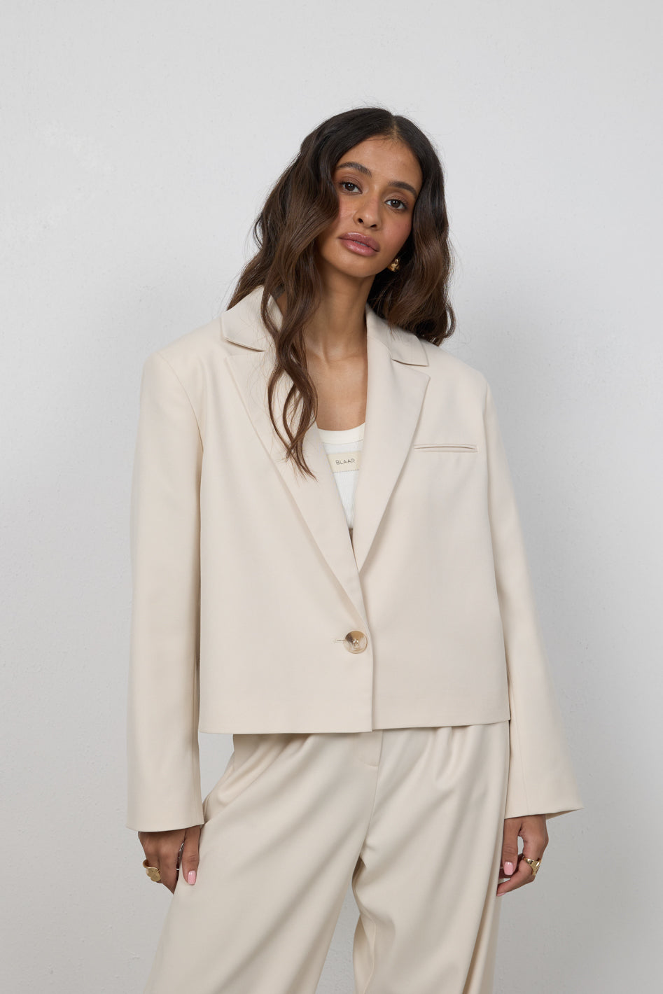 Tworzy komplet ze spodniami Elio lub Cleo, z którymi buduje spójny, elegancki garnitur. Przełam marynarkę jeansami lub luźnym topem, nadając stylizacji bardziej swobodny charakter.