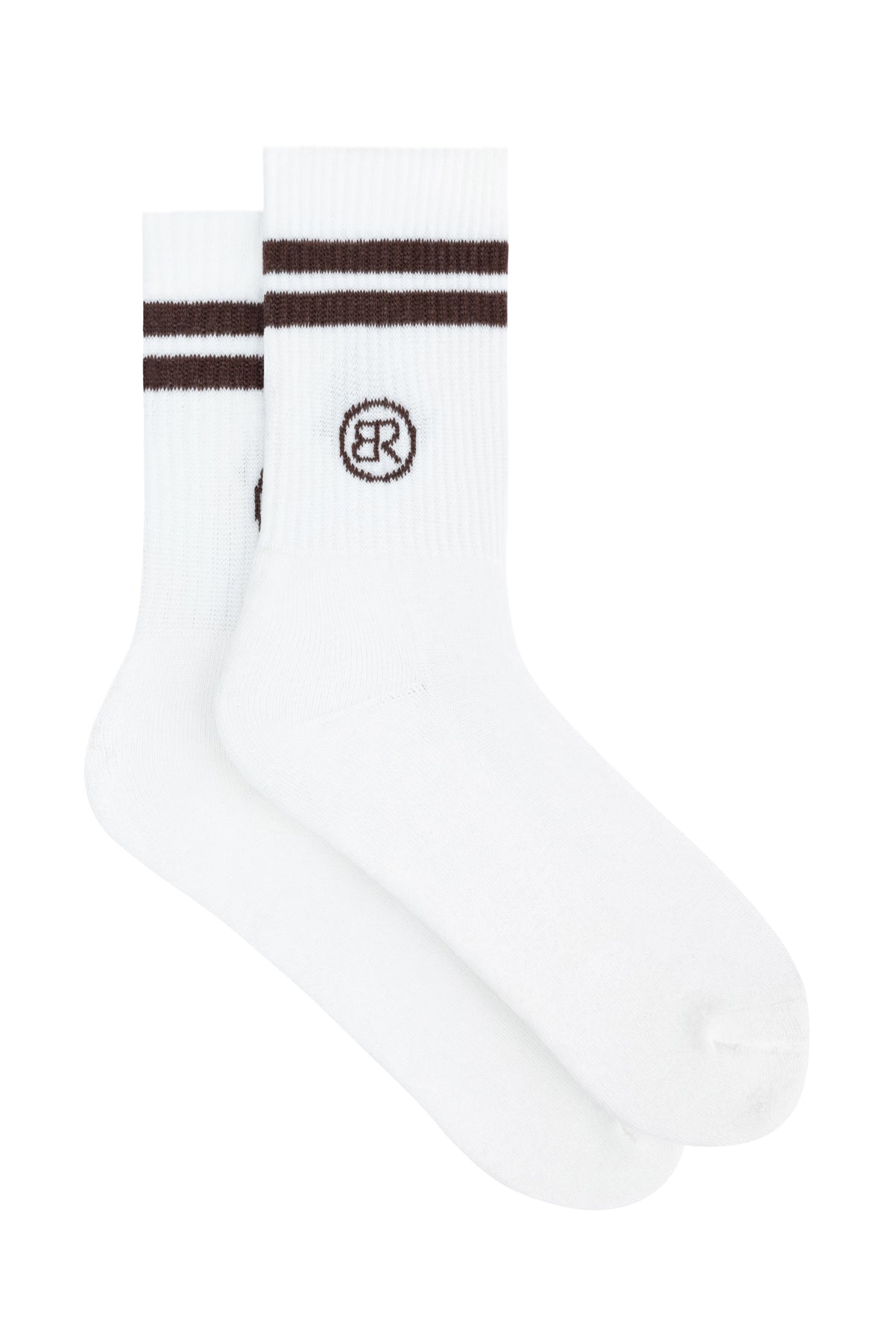 Bestsellerowe skarpetki w nowej wersji: klasyczne, kremowe z minimalistycznym logo w kolorze brązowym. Posiadają wzmocnienie na spodzie i palcach.